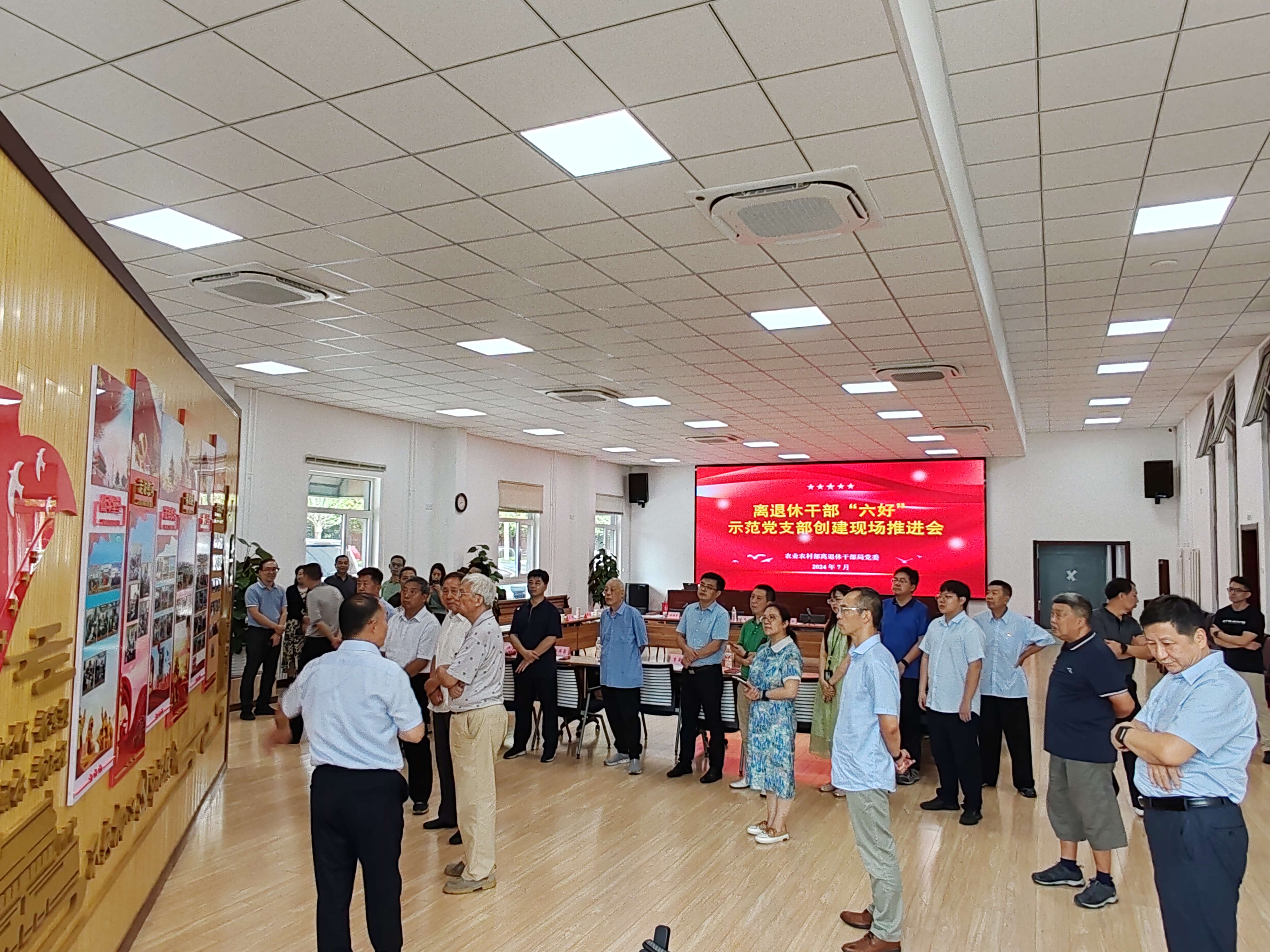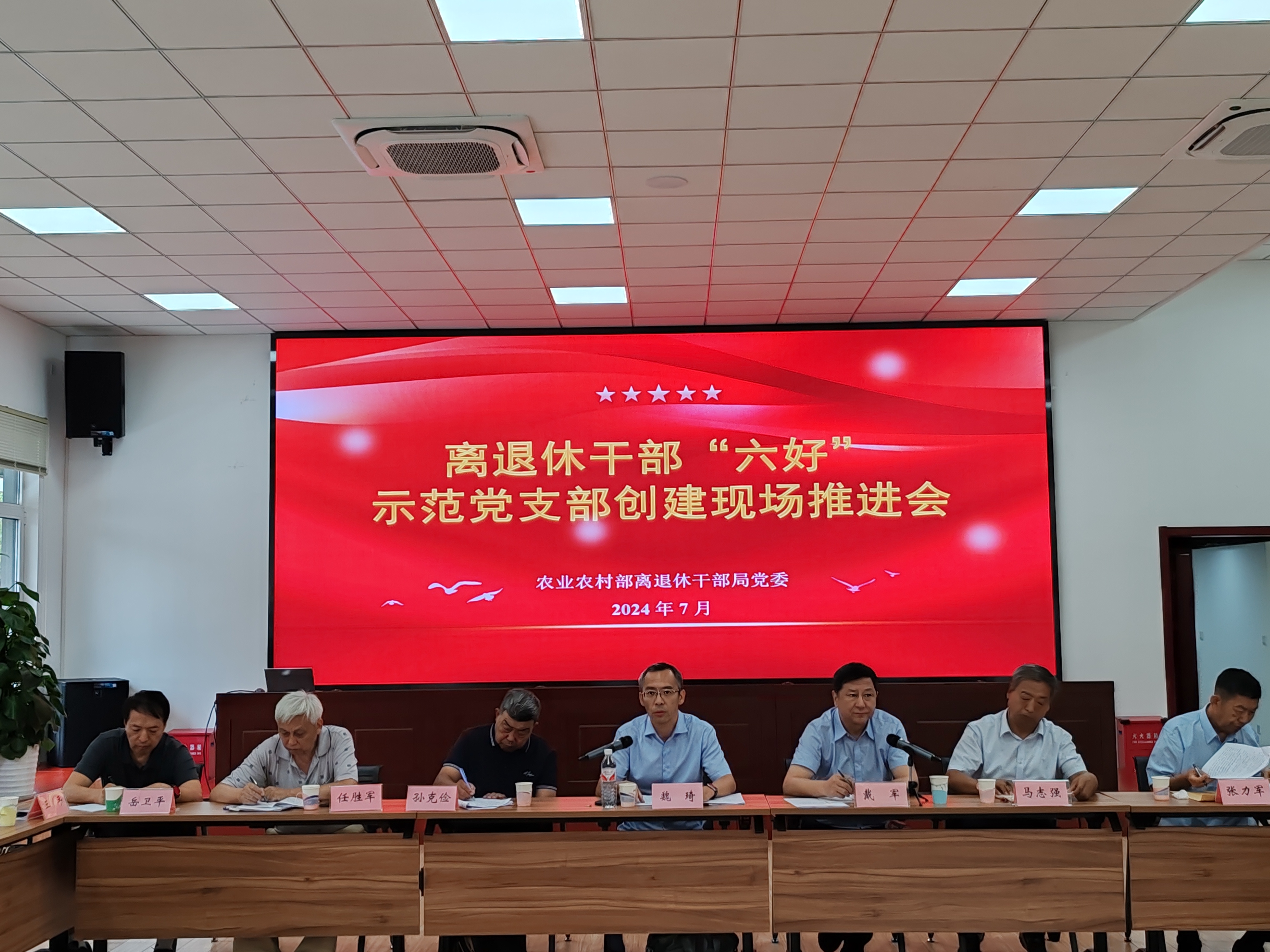 7月24日,盛夏的北京,骄阳似火,红旗高扬展风华。一场别开生面的离退休干部“六好”示范党支部创建推进会在离退休干部局团结湖活动站举行,离退休干部局党委书记、局长魏琦出席并讲话,局党委副书记、一级巡视员戴军主持会议,部机关活动站站长及离退休干部党支部书记代表、农科院等5家直属单位的离退休人员党支部书记和老干部工作者参会。部机关首批“六好”示范党支部以视频展示和现场讲解结合的方式,通过鲜活的案例、真情实感的讲述,交流创建“六好”示范党支部的经验启示,分享把党支部建成坚强战斗堡垒的生动实践,拟申报创建“六好”示范党支部的离退休干部党支部代表介绍创建情况及努力方向,共促以基层党组织组织力提升推动离退休干部党建工作高质量发展。