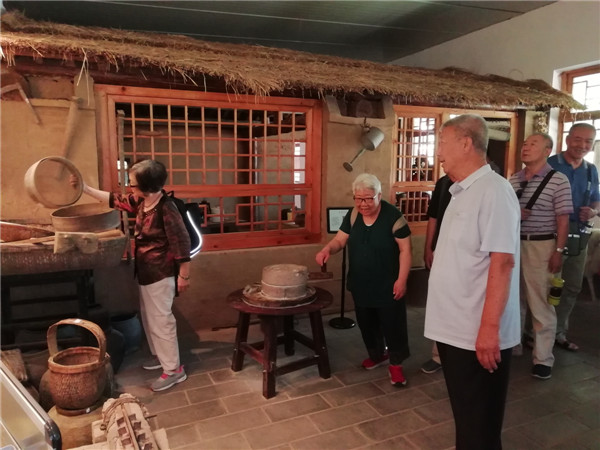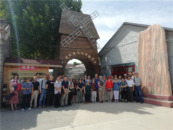河北村位于北京市顺义区南彩镇,2011-2012年度荣获“北京最美的乡村”称号,2014年该村依托双河果园“千亩采摘园”,将传统民俗文化与都市现代农业有机结合,打造运营“传承民俗文化、体验农耕文明,宣传移风易俗、注重道德培养”民宿文化园。大家跟随讲解员的步伐,先后参观传统农产品加工区、民俗文化与村史博物馆、农耕农事体验区、党建党史文化长廊等多个功能区。在村史博物馆中陈列的农用老物件,更是勾起老同志无限回忆,他们滔滔不绝地向年轻党务干部介绍着老式农具的名称和用途,讲述着当年在农村的生产生活,感慨科技进步对农业和农村经济发展的巨大推动作用。