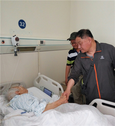 黄老今年90岁高龄,身患多种疾病,双目失明。西单工作处工作人员向专护人员询问老人的身体情况和饮食起居,并特意找主治医生了解病情。黄老不舍地再次紧紧握住西单工作处工作人员的手。她虽然话语含糊不清,但声声的感谢却清晰可闻,熟知黄老的专护人员动情地说:“你们来看阿姨,她是真高兴啊!”