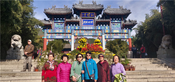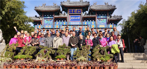 当天北京云淡风轻,阳光灿烂,京北古刹红螺山景区内古树茂盛,环境清幽。正值秋意渐深,红螺山上山下的红叶彩叶纷纷变装,千年古刹红螺寺掩映在千亩松海之中,呈现出一幅庄严、绚丽、妙趣的古刹秋景图。游览中,老同志闲庭信步,谈笑风生,尽情享受着回归大自然的惬意。他们或观赏园中秋叶秋菊,细细地品味,净心感受秋天的轻语;或漫步红叶林间不时驻足合影,与红叶彩叶来个亲密接触;或瞻仰庄严佛仪,感慨中华文化博大精深;部分身强体健的老同志还登高望远,临风高歌,欣赏或远或近的“会都”秋色,领略健身养生的乐趣。