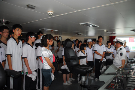 揭牌仪式后,大家一同参观了爱国主义教育基地,参观了功臣船34船,听取了现场讲解。同学们认为通过这次参观学习,对海洋有了更深的认识,许多同学立志投身海洋事业,为开发海洋,利用海洋,保护国家的海洋权益作出应有的贡献。参加活动的各单位关工委主任纷纷要求暑假安排其单位的团员青年及职工小孩到基地参观学习,吴壮局长表示尽最大努力满足大家的要求。
