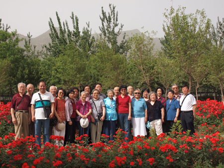 此次活动适逢当地举办第六届北京月季文化节,经文化节工作人员的热情接待和耐心讲解,老同志们品尝了芳香四溢的玫瑰茶,了解了玫瑰的生长特点和用途以及大马士革玫瑰的产地和加工等方面知识,还学会了辨识月季和玫瑰的方法。看到玫瑰鸡、玫瑰蛋和玫瑰酒等玫瑰产品,大家都赞叹不已。