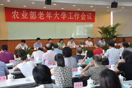 8月30日至31日,农业部老年大学在农业部管理干部学院召开工作会议,学习传达农业部党组成员、副部长、老年大学名誉校长牛盾关于要把老年大学“办出我部老年大学的水平、质量和特色”的批示,总结部署老年大学的工作,分析研究新时期面临的新情况、新任务。农业部离退休干部局局长、农业部老年大学校长陶永平出席会议并讲话。农业部离退休干部局副巡视员、农业部老年大学副校长祝东星总结部署了老年大学的工作。农业部老年大学校委会成员、有关部属单位分管离退休干部工作的领导,农业部老年大学教师、班主任、班长及负责老年大学工作的同志共90余人参加了会议。中国老年大学协会会长张文范应邀作专题讲座。会议由农业部离退休干部局巡视员原晓东主持。