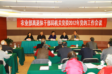 会议由局机关党委常委、副巡视员祝东星同志主持,局机关党委常委、巡视员原晓东同志传达了《中央组织部老干部局2012年工作要点》,局机关党委常委、副局长庞志谦同志传达了韩部长在听取我部机关党建工作情况汇报后的讲话和《农业部直属机关2012年党建工作要点》。会议还组织与会同志进行了分组讨论。老同志们对部直属机关党委和我局机关党委领导的新思路和新作风给予了很高评价,并希望抓好落实。局机关党委委员和各支部书记近50人参加了会议。