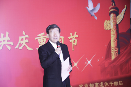 牛盾发表了热情洋溢的致辞。他首先代表部党组、韩长赋部长向部系统广大离退休干部致以节日的问候和崇高的敬意!他指出,1982年,党中央作出了建立老干部退休制度的决定,为推进新老干部合作与交替、保证党的事业薪火相传建立了制度保障。30年来,农业部不断完善离退休干部工作领导机制体制,坚持加强离退休干部思想政治建设和党支部建设,切实落实离退休干部各项待遇,研究提高工作职业化、专业化水平,全面推动了离退休干部工作科学发展。