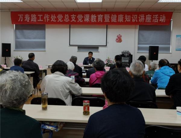 在加强老同志政治理论和“三农”知识学习的同时,党总支关注老同志的身体健康状况,邀请清华大学玉泉医院干部医疗科乔燕燕副主任现场讲授《老年心脑血管疾病的预防及治疗》课程,让老同志系统了解心血管疾病的预防和紧急救治方法。课程结束后,干部医疗科的大夫们为老同志免费测量血压和血糖,并针对老同志具体情况进行面对面交流。