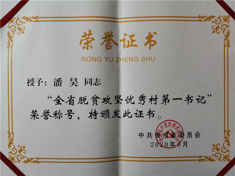 潘昊同志自2018年9月驻村以来,以习近平总书记关于扶贫工作的重要论述为指导,蹲在基层干,盯着脱贫抓,通过紧抓党建强组织凝心聚力促脱贫,为脱贫工作打下了坚实的村级组织基础。他围绕“一达标两不愁三保障”,精准制定贫困户脱贫政策,使59户223人实现脱贫,贫困发生率由2017年底的11.5%下降到2019年底的1.7%。他紧盯产业带脱贫,把身子沉在田间地头,组织合作社带领群众搞林下养鸡、草莓采摘园、水产养殖、光伏电站等示范项目,带动贫困群众和村集体增收。他积极协调推动寨章华润希望小镇、多条村级道路、路灯、厕所革命等建设,极大改善了群众生产生活条件。在疫情防控期间,他想方设法帮助务工人员返岗就业,全力推动复工复产,脱贫和疫情防控成效显著。
