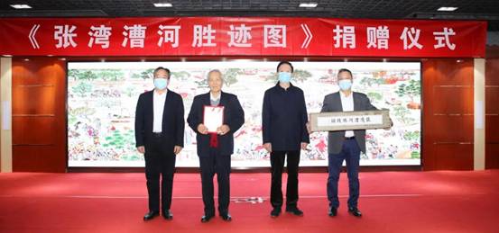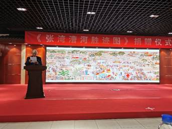 在捐赠仪式上,区政协常务副主席石宝玉与林殿惠先生共同为区档案馆、张家湾博物馆捐赠《张湾漕河胜迹图》,区政协副主席朱志高为林殿惠先生颁发捐赠证书。
