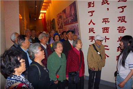 老同志们观看了以平西抗战史料为主要内容的数百件抗战图片和文物,倾听了平西抗日战争先烈们的英勇事迹,瞻仰了平西抗日纪念碑和百名抗日烈士碑林,深深折服于抗日军民的英雄气概。老同志们在参观过程中还自发地唱起了“没有共产党,就没有新中国”等歌曲,唱到动情之处,有的老同志歌声哽咽、热泪盈眶……。