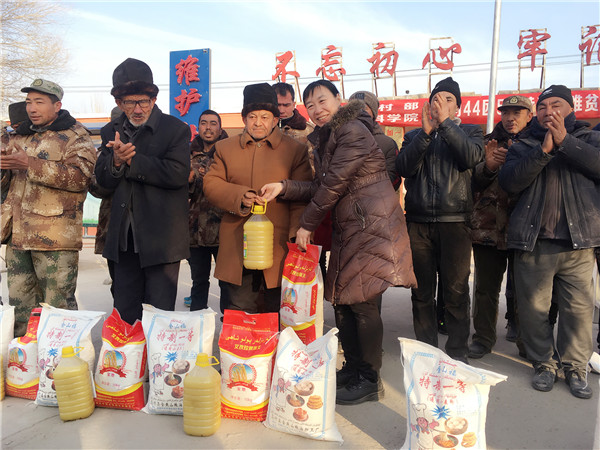 受农业农村部离退休干部局党委书记、局长陶永平同志委托,张立英同志向5连的父老乡亲致以新春的问候,希望5连职工群众牢记党和政府的关心和帮助,在连队党支部的坚强领导下早日脱贫致富。