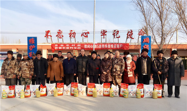 “感谢农业农村部、新疆农垦科学院给我们带来的慰问品,帮助我们很多,我们非常感谢他们, 热合买特(维吾尔语:谢谢!)。”困难群众代表苏莱曼·买买提说到。